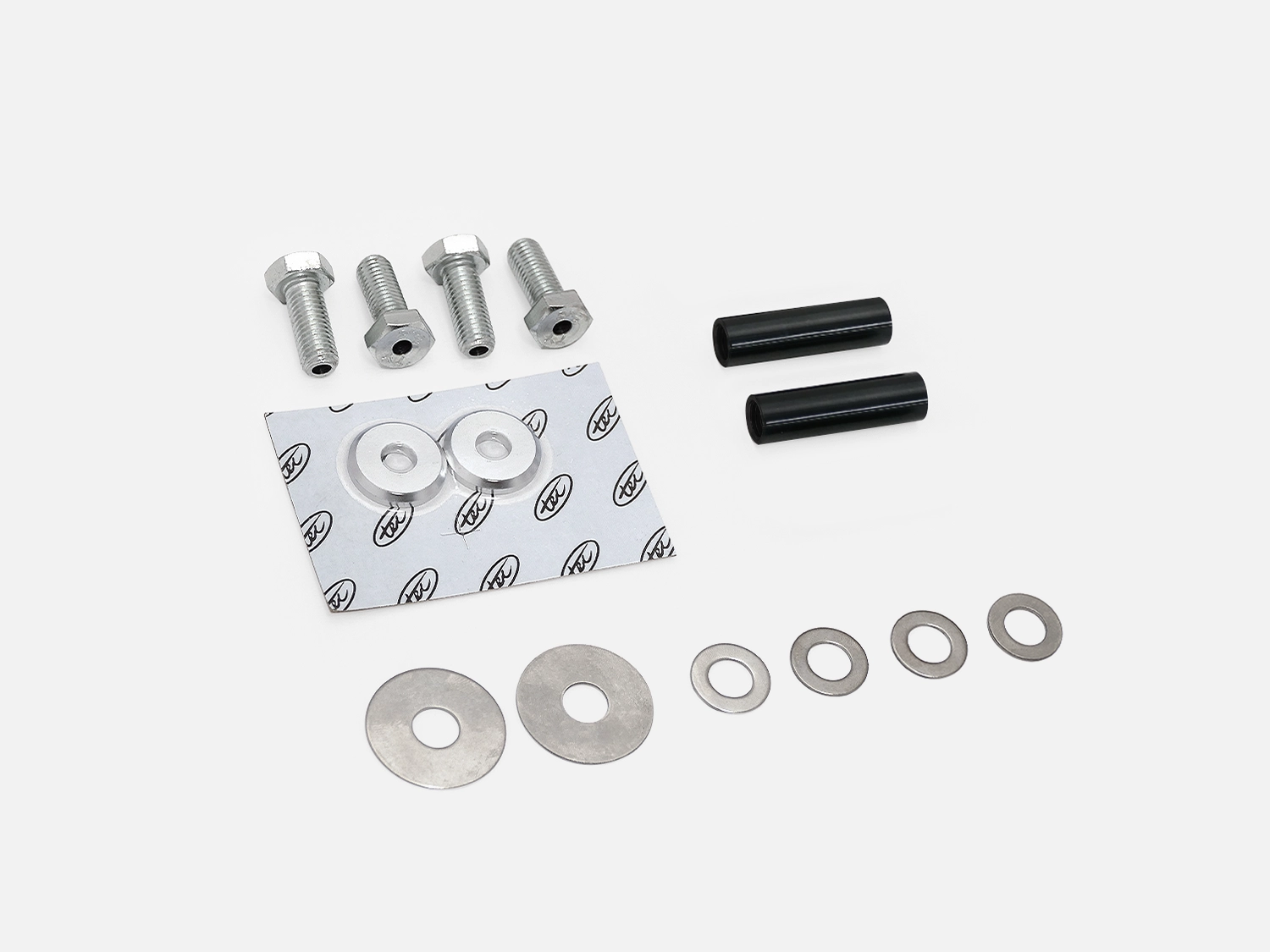 Kiinnitetään alkuperäisten tankokiinnikkeiden alle mukana tulevilla erikoispulteilla