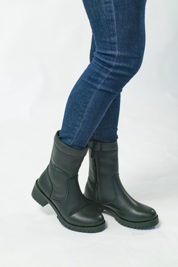 Tyylikkäät mustat ajobuutsit keskipitkällä varrella